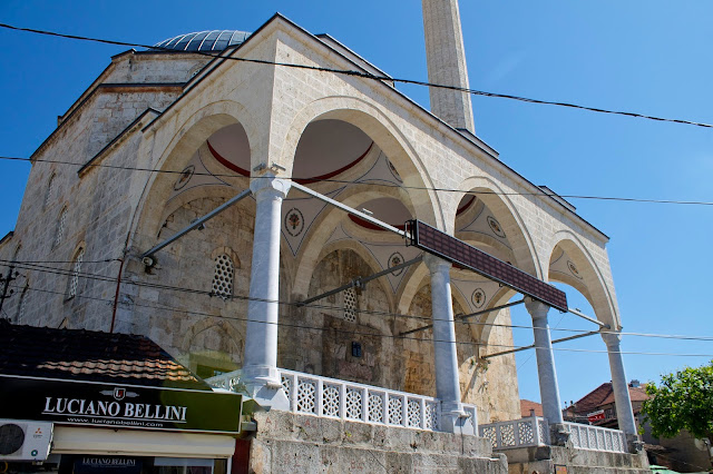 Com a aparentemente "problemática" ronda pelas igrejas concluída, seguimos novamente para a praça central - a Shadërvani - de forma a chegarmos à principal mesquita da cidade, que se destaca no horizonte: as Sinan Pasha. Esta foi construída no século XVII, em plena ocupação Otomana, e foi decretada "Monumento Cultural de Importância Excepcional" pela Sérvia em 1990.