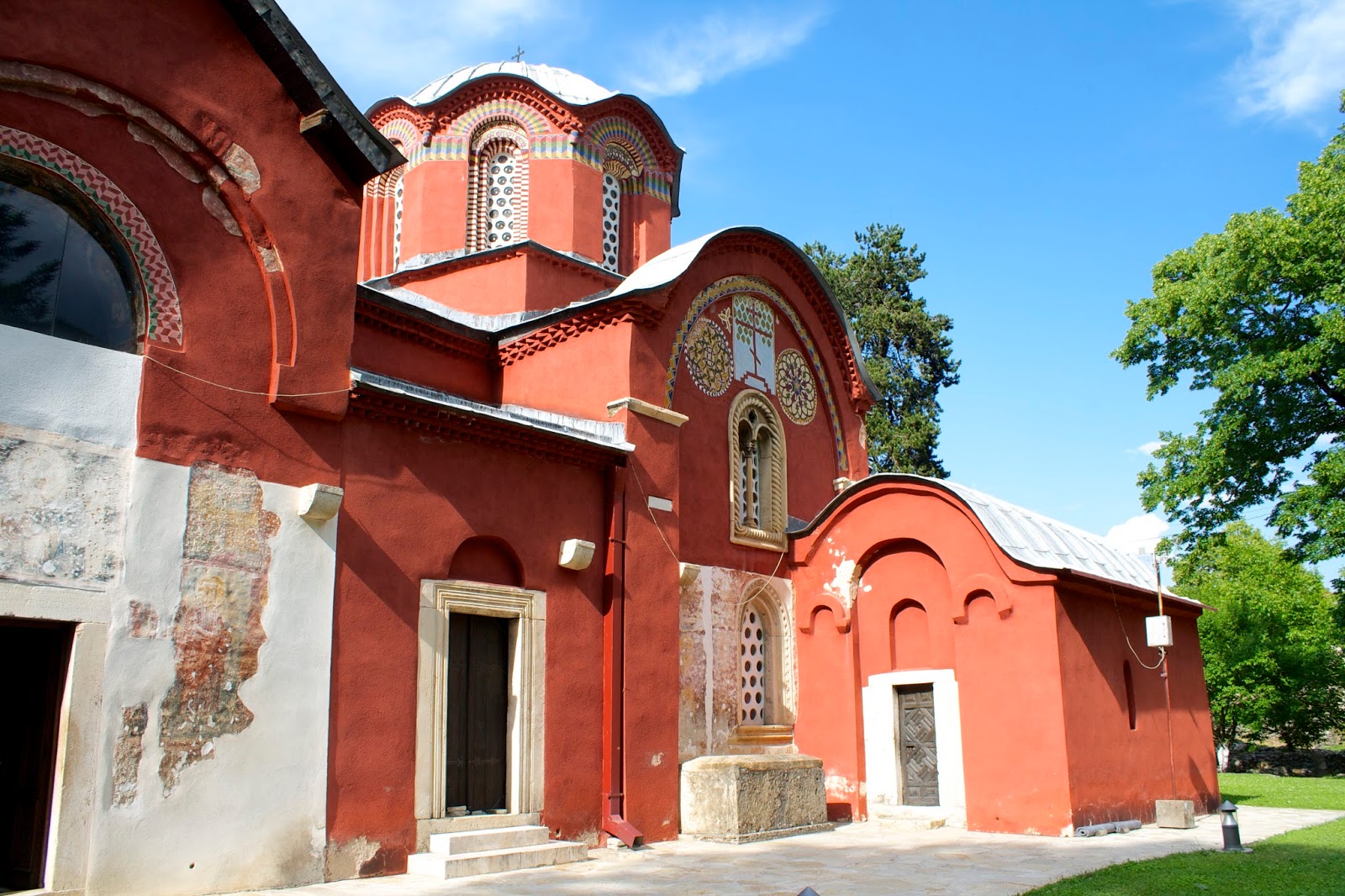 A montanhas em redor da cidade são só por si um atractivo mas o caminho ao longo do rio até ao Patriarcado é sem dúvida deslumbrante - e após o mesmo torna-se ainda mais bonito: tivemos alguma dificuldade em encontrar o mesmo e quando nos apercebemos já o tínhamos passado há algum tempo. Acontece que o dito se encontra protegido por altos muros com arame farpado no topo - tal e qual uma prisão - com indicações de se tratar de uma área restrita a militares. Não há qualquer indicação do que se encontra lá dentro e só após perguntarmos a um jovem que negociava antiguidades junto de vendedor na beira da estrada é que descobrimos o caminho. Assim, entregamos o passaporte na guarita à entrada do dito complexo e abriram-nos o portão. Entramos com o carro e estacionamos num enorme estacionamento vazio, onde apenas se encontrava mais um polícia que aproveitava o tempo para limpar o seu carro, que nos indicou a entrada numa segunda zona "muralhada" onde finalmente encontramos o templo mais bonito que visitamos no Kosovo.