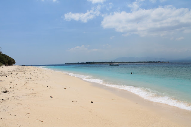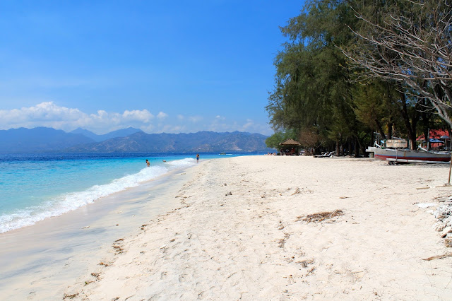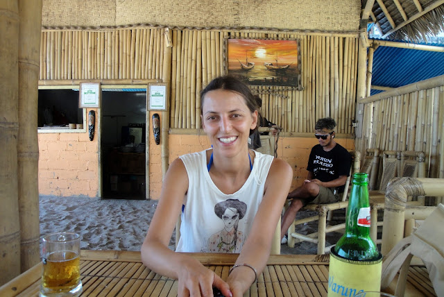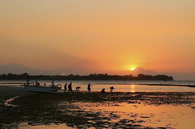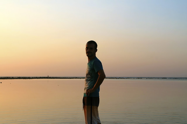 A praia é agradável e com muito pouca gente - teria meia dúzia de miúdos locais a fazer surf e umas dezenas de turistas enfiados em resorts em frente à praia. No entanto, para ser o mais honesto possível, depois de fazer praia nas Gili sabe a pouco. Já o por do sol, é muito parecido com o que se tem no pequeno arquipélago de três ilhéus: