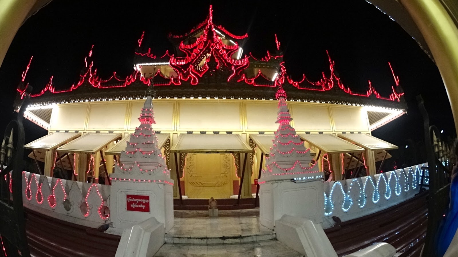 Nisto, demos de caras com o Kyauk Taw Gyi Paya, na realidade um complexo de templos e pavilhões de construção recente, decorados à noite com todo o tipo de iluminações. Haveríamos de regressar no dia seguinte, pelo que voltaremos ao mesmo em mais detalhe no próximo post sobre a cidade.